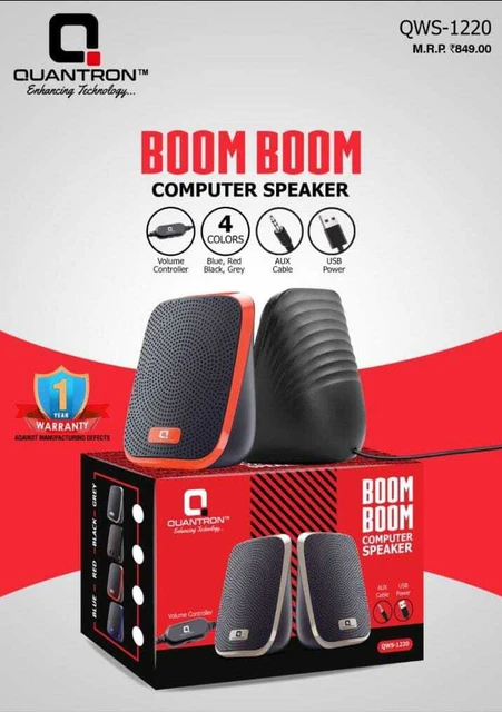 & Free ShippingThe Quantron Boom Boom Computer Speaker (Model: QWS-1220) is designed to deliver clear, powerful sound with a modern and compact look, making it perfect for desktops, laptops, and everyday multimedia use. Whether you are listening to music, watching movies, attending online classes, or gaming, these speakers provide an enhanced audio experience with balanced bass and crisp sound output.